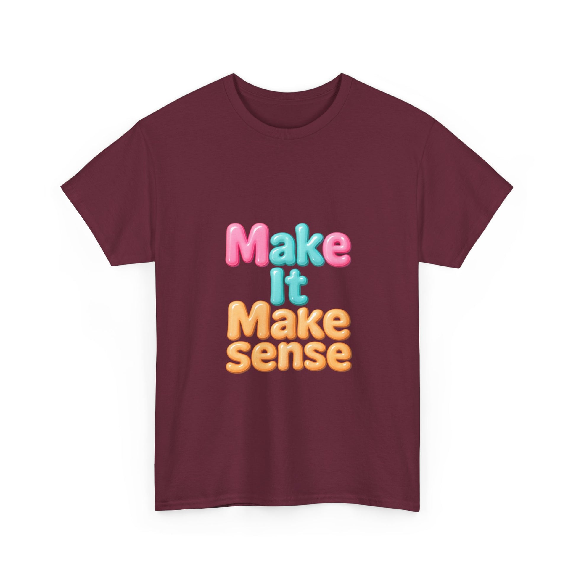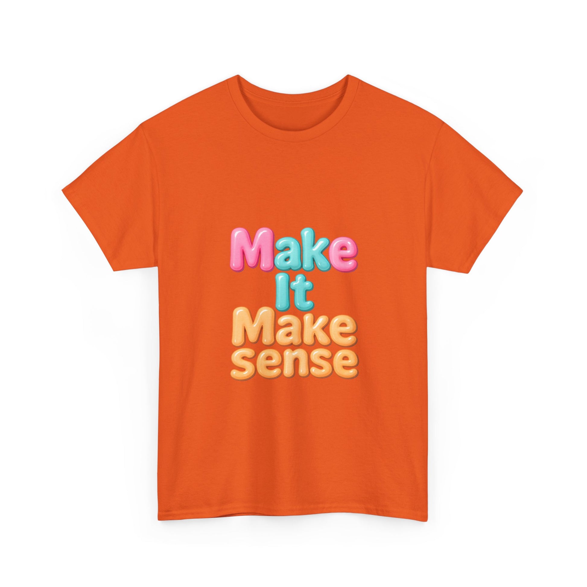 Introducing a vibrant and playful Unisex Heavy Cotton Tee that's sure to bring a smile wherever you go! With its cheerful 'Make It Make Sense' design, this tee encapsulates a fun and easy-going vibe, making it perfect for casual outings, gatherings with friends, or lounging at home. This versatile piece fits seamlessly into your everyday wardrobe, emphasizing comfort without sacrificing style. Ideal for anyone looking to express their lighthearted side, it appeals to students, creatives, and anyone with a love for clever expression. This tee is a great gift for holidays like birthdays, casual get-togethers, or just to brighten someone’s day!