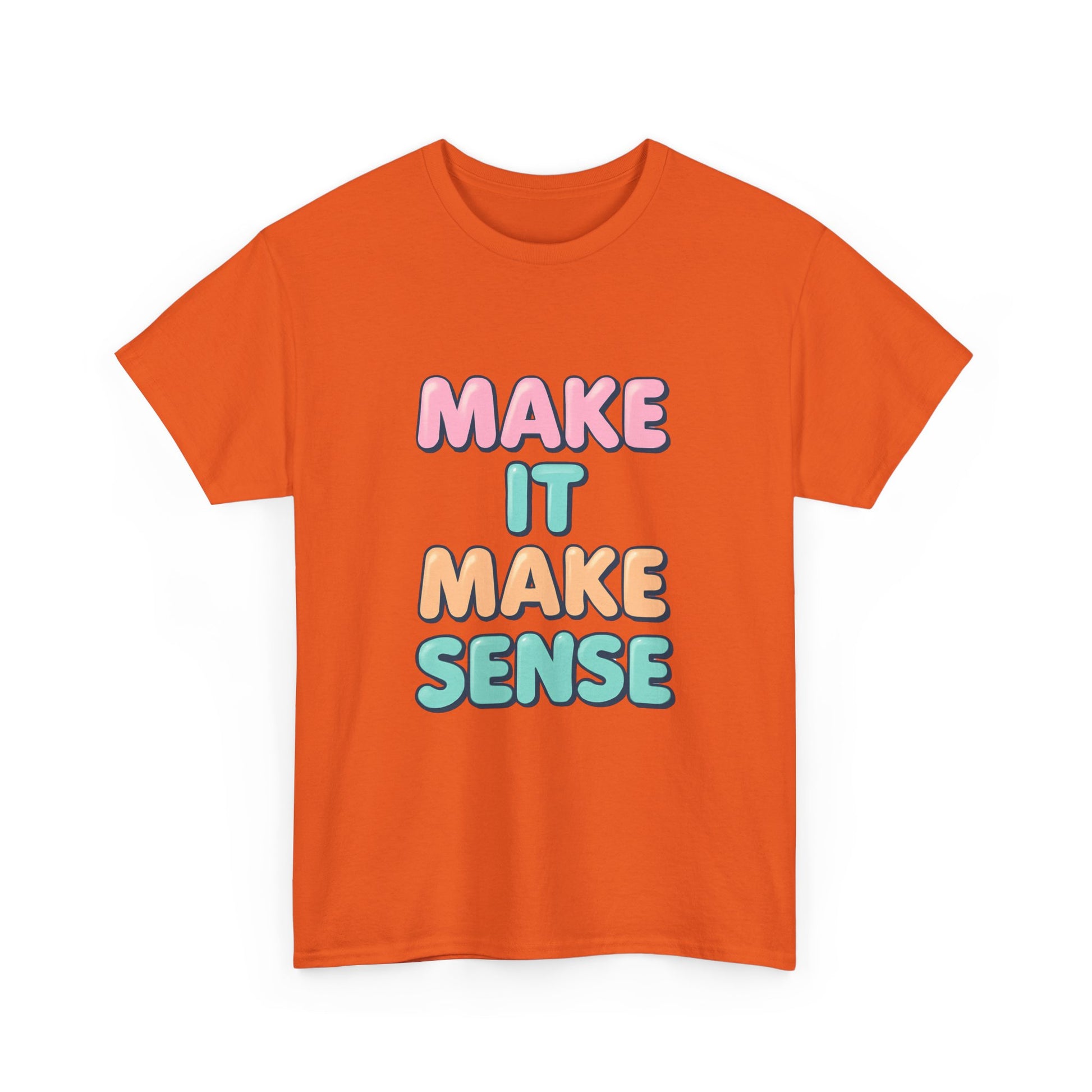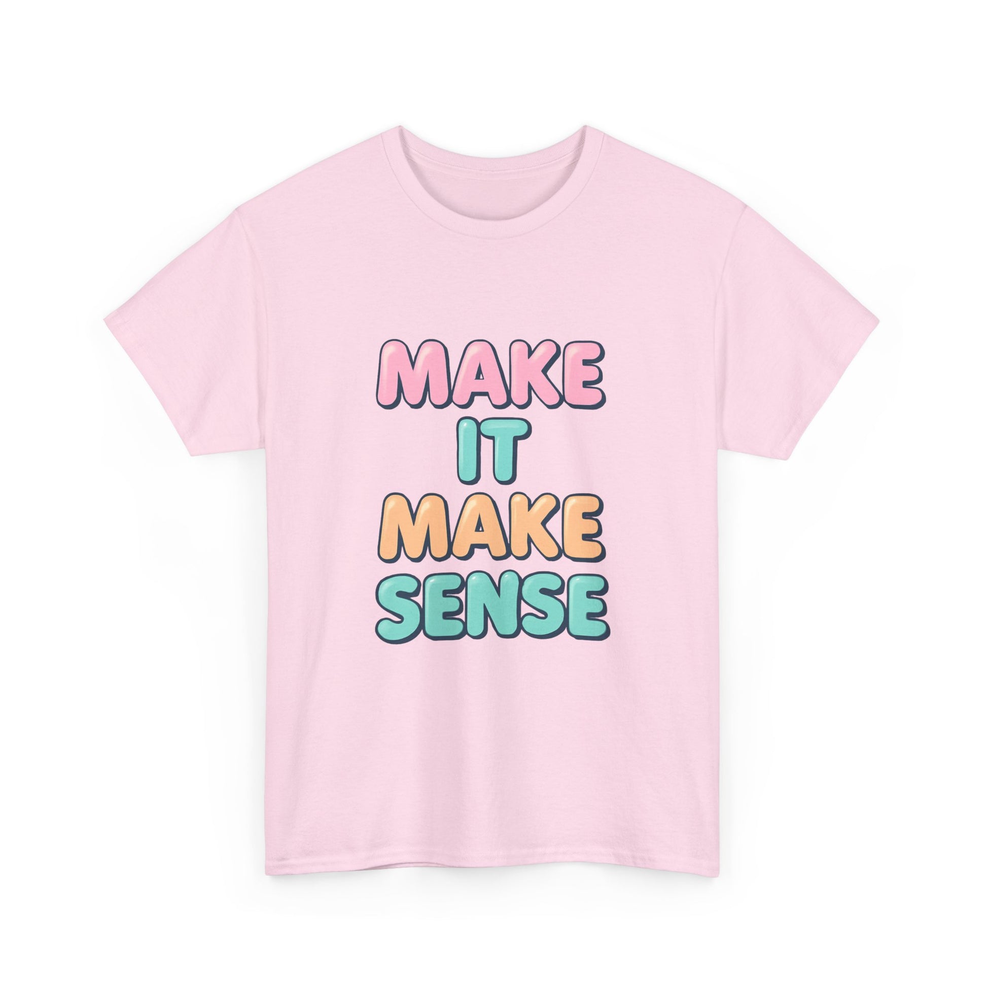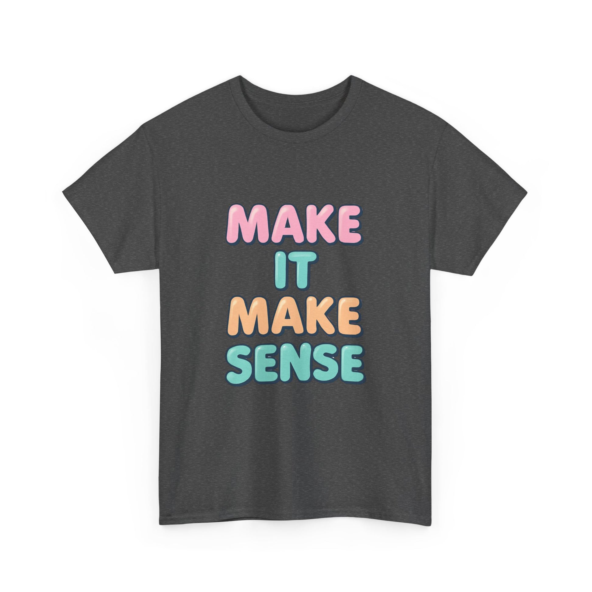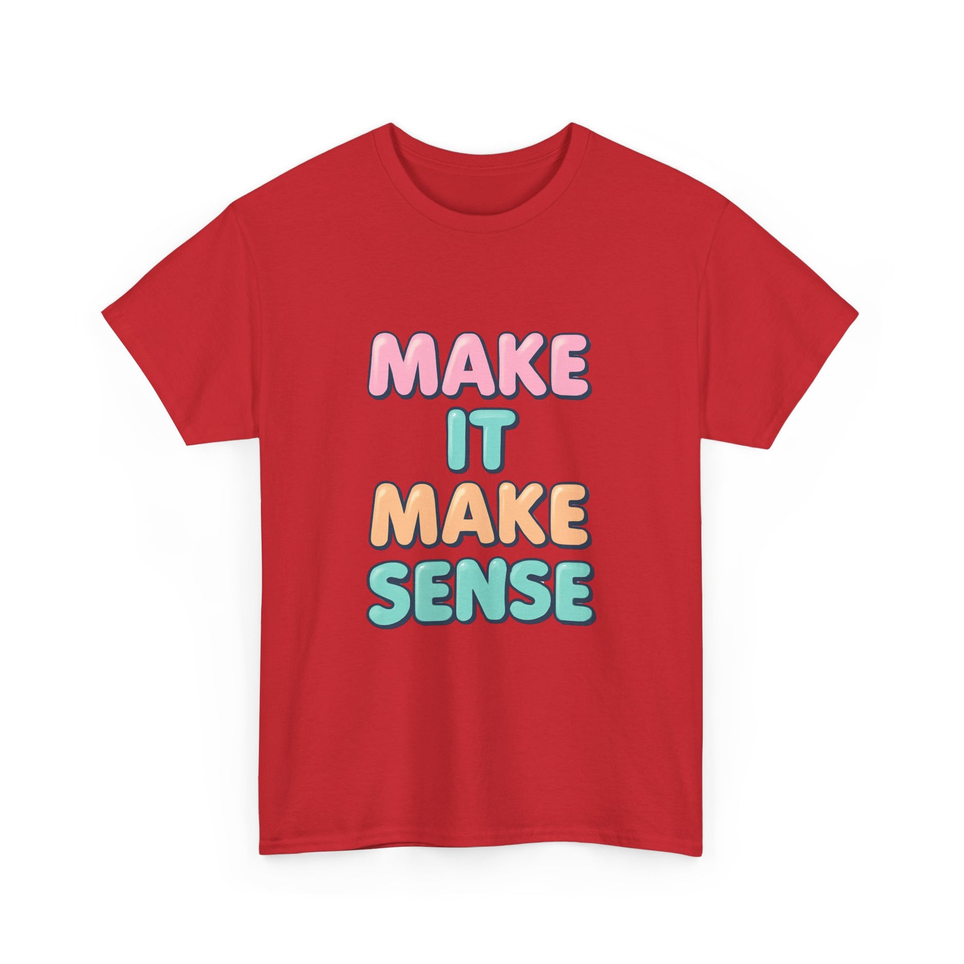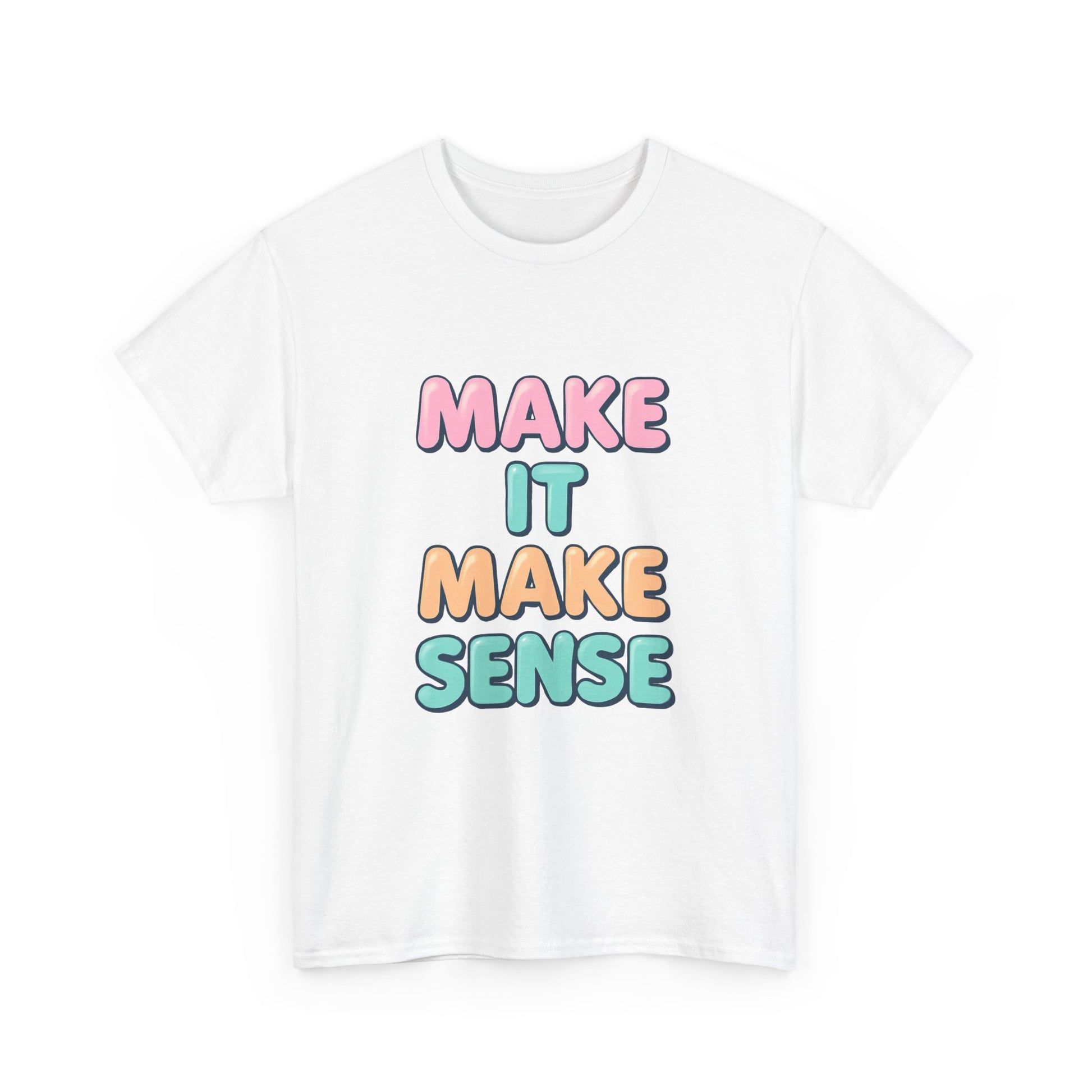 Introducing a vibrant and playful Unisex Heavy Cotton Tee that's sure to bring a smile wherever you go! With its cheerful 'Make It Make Sense' design, this tee encapsulates a fun and easy-going vibe, making it perfect for casual outings, gatherings with friends, or lounging at home. This versatile piece fits seamlessly into your everyday wardrobe, emphasizing comfort without sacrificing style. Ideal for anyone looking to express their lighthearted side, it appeals to students, creatives, and anyone with a love for clever expression. This tee is a great gift for holidays like birthdays, casual get-togethers, or just to brighten someone’s day!